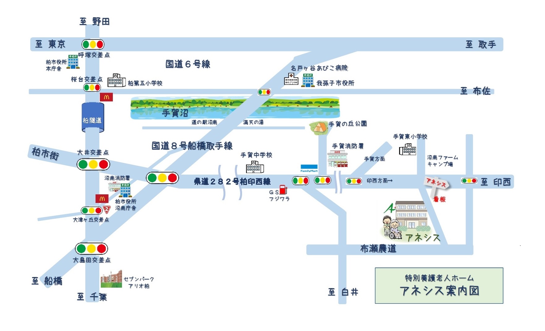 アネシスは千葉県北西部・柏市の豊かな自然の中に建つ特別養護老人ホームです。アネシスとはギリシャ語で「安心」を意味する言葉です。
