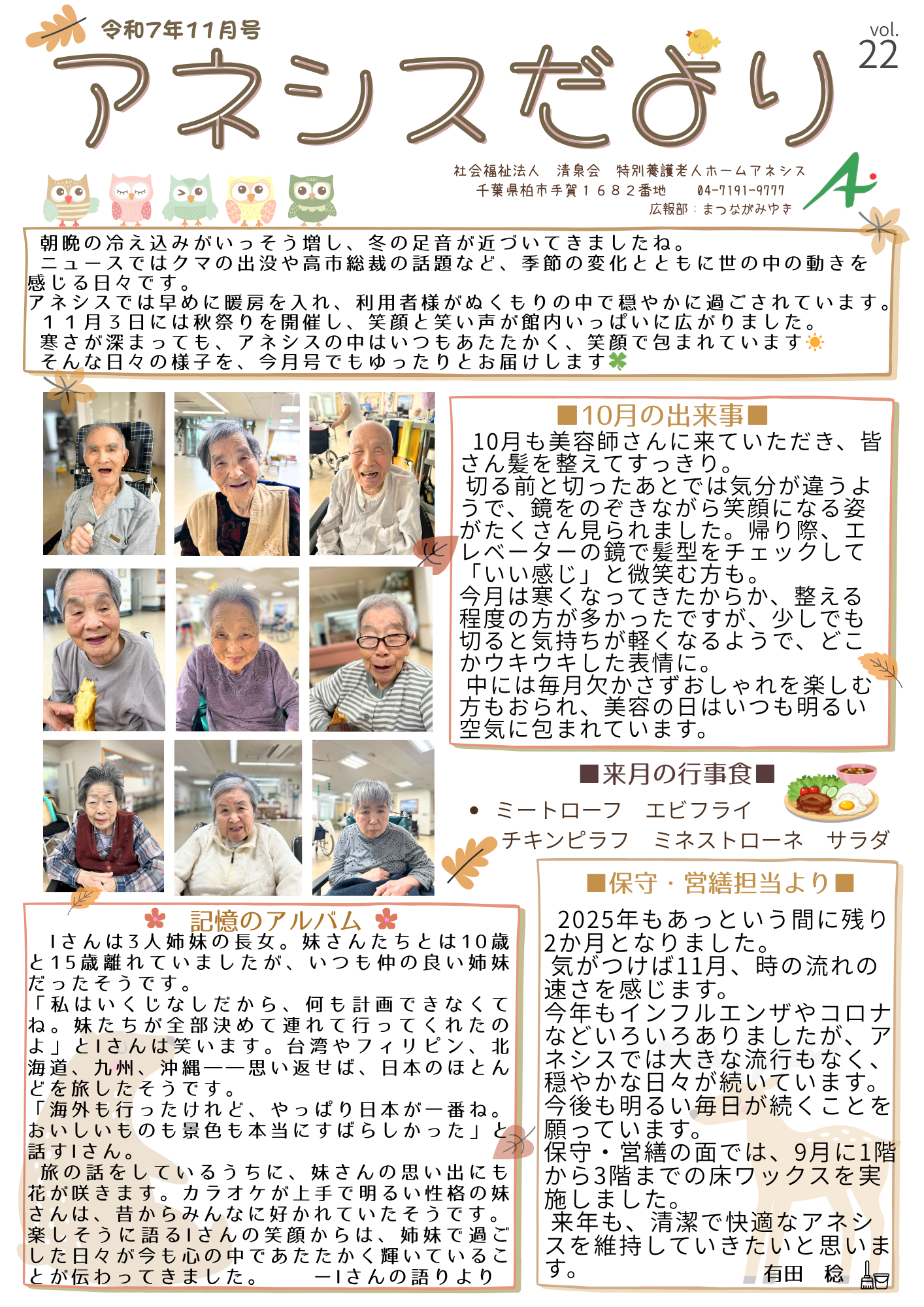 短期入所 空室状況です。(2025.11月~2026.1月)