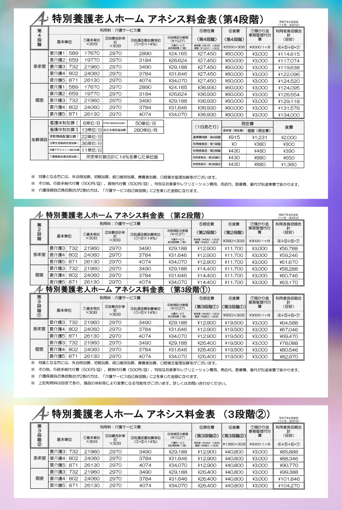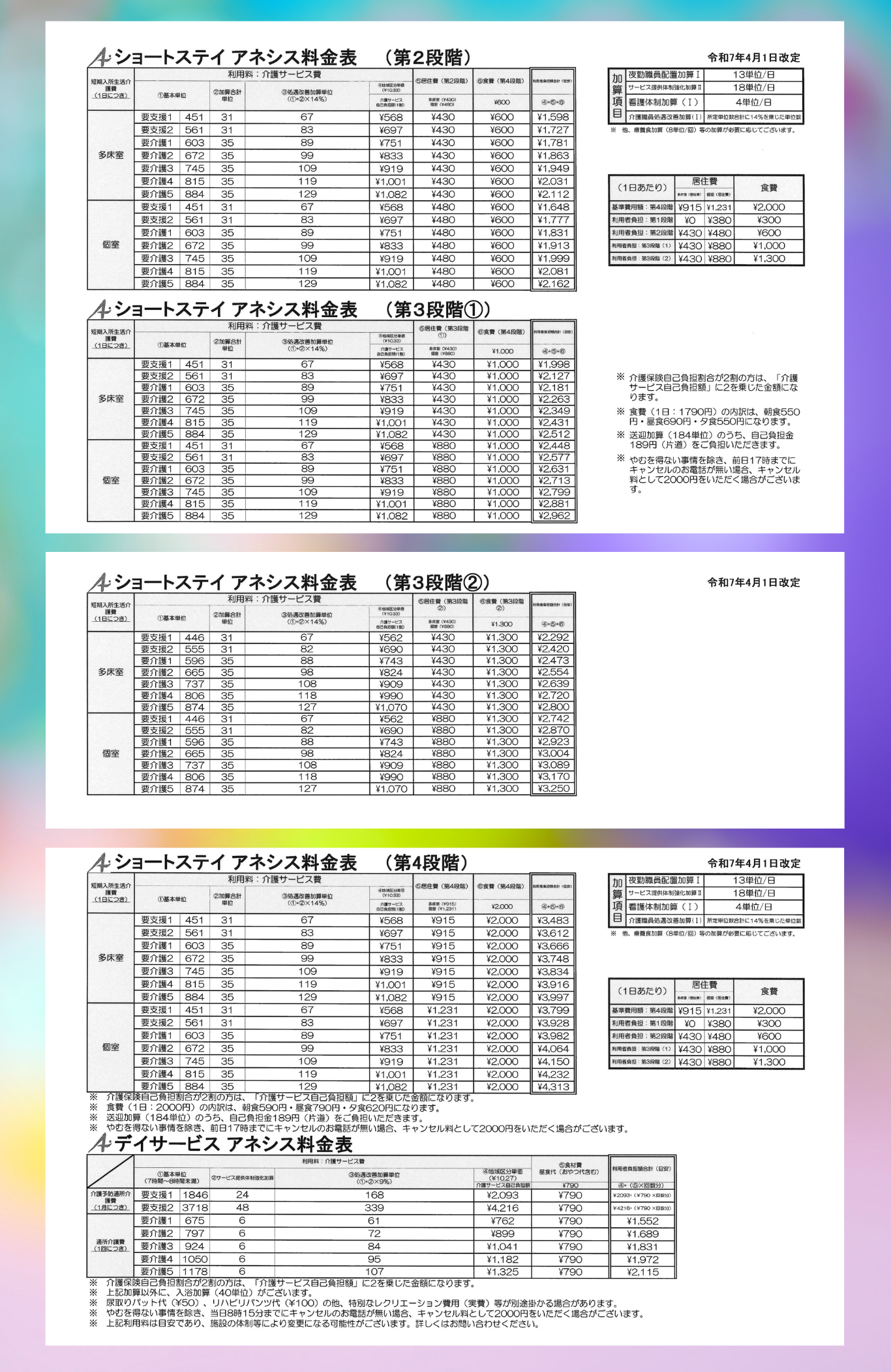 短期入所(ショートステイ)&デイサービスの料金表になります。
